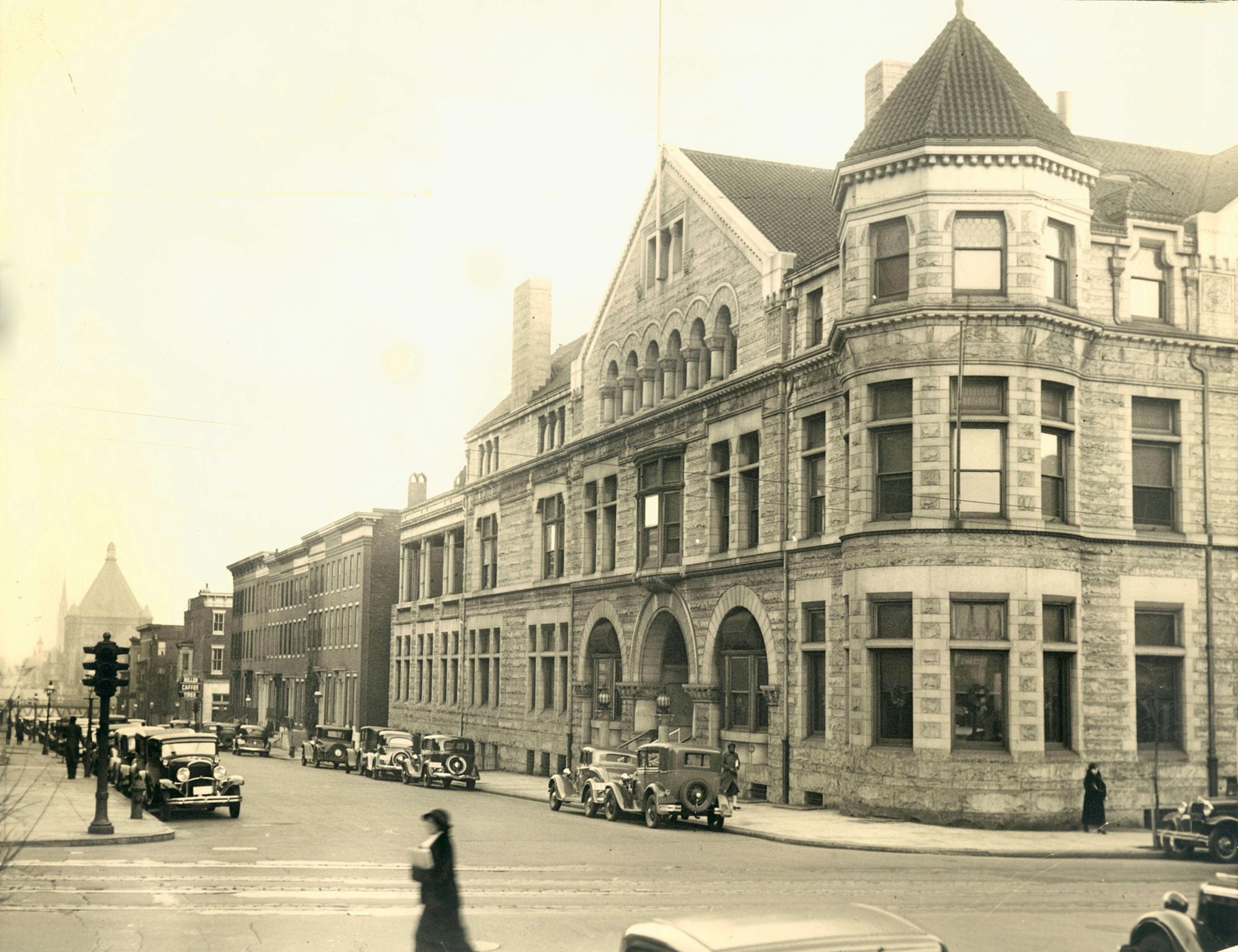 As the club flourished, and the city expanded northward, the governors purchased a vacant lot on the southeast corner of Charles and Eager streets and made plans for a new club house. The lead architect, Josias Pennington of the local firm Baldwin and Pennington, had much experience designing B&O Railroad stations. His Romanesque building in the style of Henry Hobson Richardson made heavy use of Baltimore-County white marble and formally opened on New Year’s Day, 1892.
