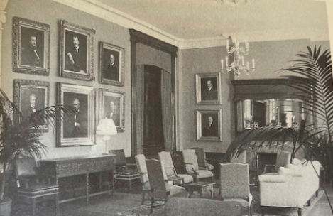 After a disastrous fire in 1995, club leadership elected not simply to repair the Eager Street building but to restore it-- refinishing floors and paneling, repainting walls, and rethinking the arrangement of prints, paintings, and trophies. When the club re-opened the following year, it supplied a subject of much professional commentary, and members applauded heartily.
