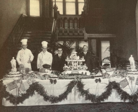 Besides the comforts of the new club house--front fireplace blazing on a chilly evening; dozens of gentlemen playing bridge or billiards before walking home--the Maryland Club carried appeal because of its reputation for fine food and drink. Club cooks made the most of local delicacies—canvasback and other ducks; oysters and clams; Chesapeake terrapin; marsh birds; Southern Maryland salt-cured and smoked ham; Rockfish from the bay; hominy and tomatoes from the Eastern Shore; and the list went on, eventually including blue crab. Visitors often commented on these local delicacies; Marylanders never took them for granted.